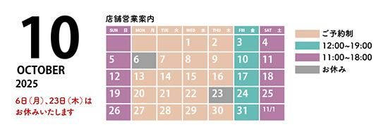 ご予約予定のない日にはお休みをいただく場合がございます。
