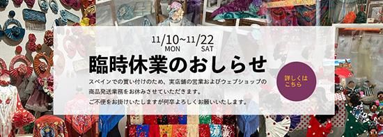 スペイン出張のため、実店舗の営業およびウェブショップの商品発送業務をお休みさせていただきます。