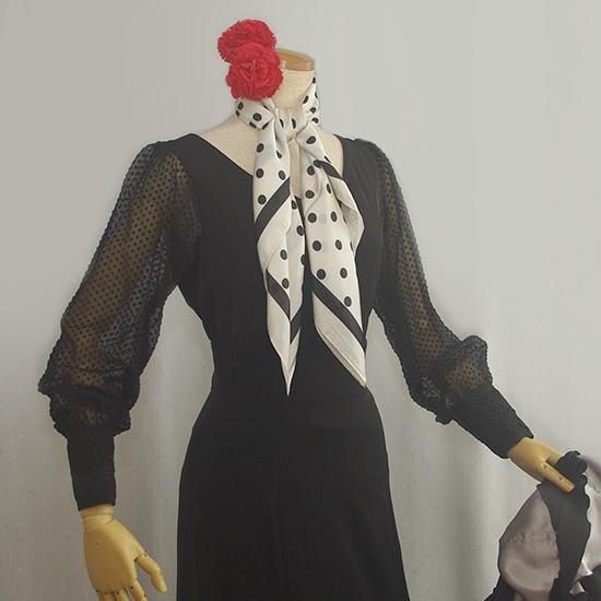 首に巻いたり。男性にもオススメの水玉スカーフ