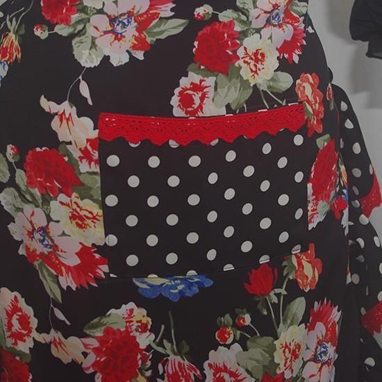 エプロン マンディル センターポケット付き 花柄/レースレッド