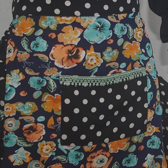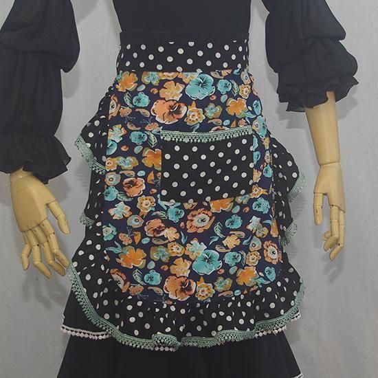 エプロン マンディル センターポケット付き 花柄/レースエメラルドグリーン
