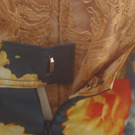 ・後ろ中心にファスナー、ウエスト部分にホック付き