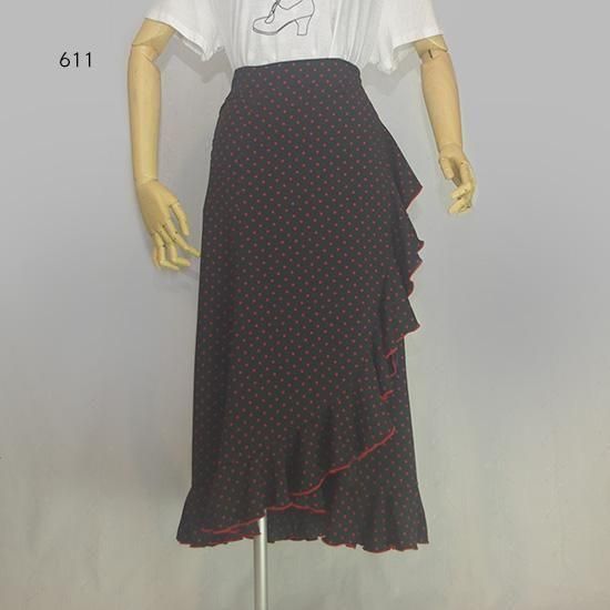 ペチコート付き、ピキージョ付きファルダカナステーラ(ティアードハイウエストスカート)ブラック×レッド カットシフォン