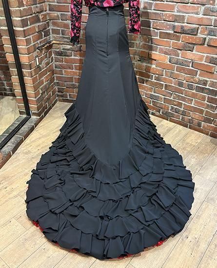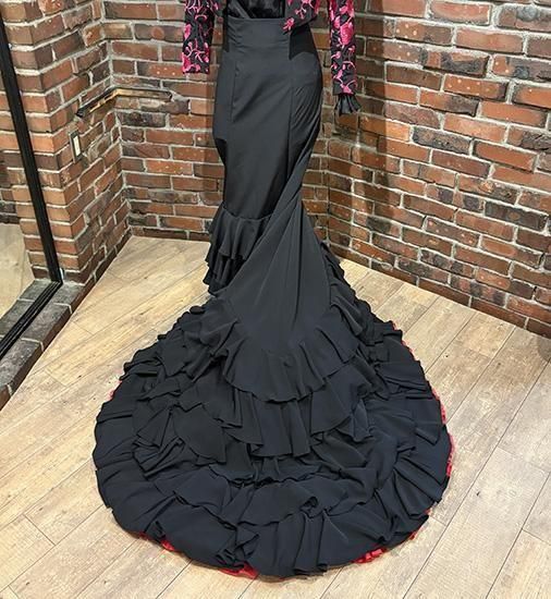 ストレッチマーメイドファルダ 5段シフォンフリル ベロア ブラック・マドローニョ