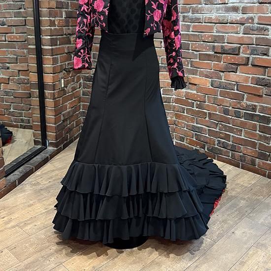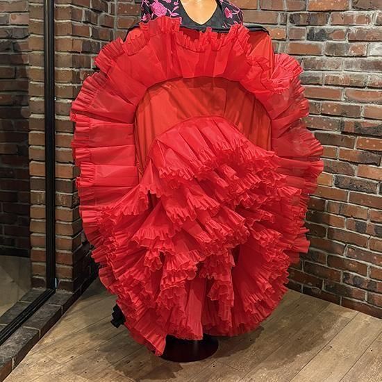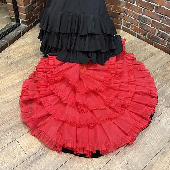 ペチコート付きファルダカナステーラ(ティアードハイウエストスカート)ブラック×レッド カットシフォン