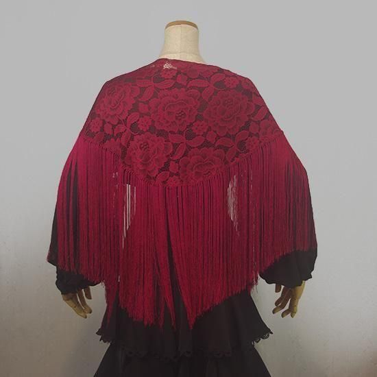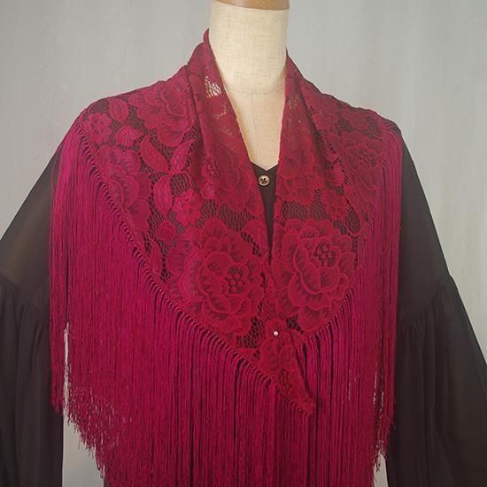 ペチコート付き、ピキージョ付きファルダカナステーラ(ティアードハイウエストスカート)ブラック×レッド カットシフォン