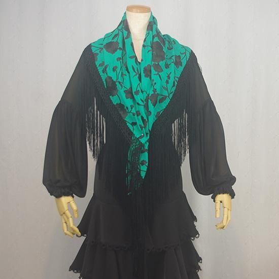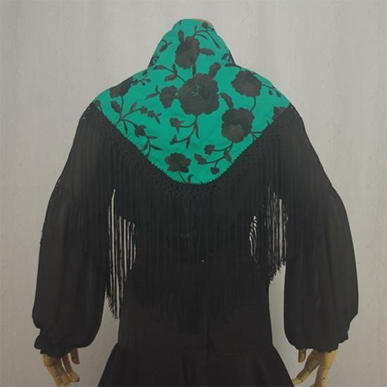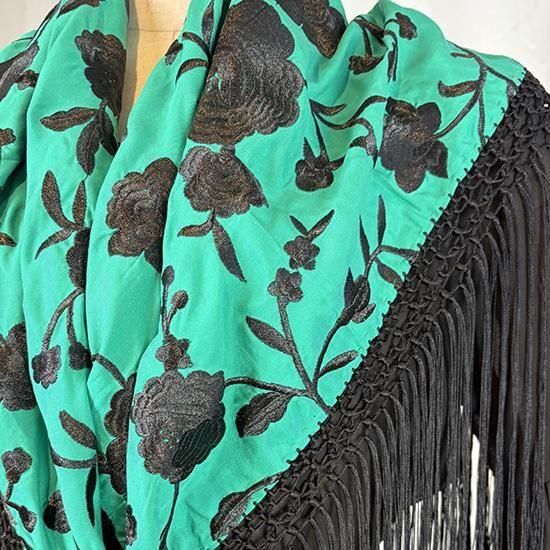 刺繍マントンシージョ 142cm×60cm VERDE×NEGRO