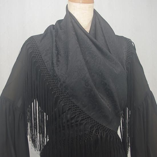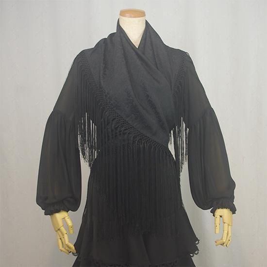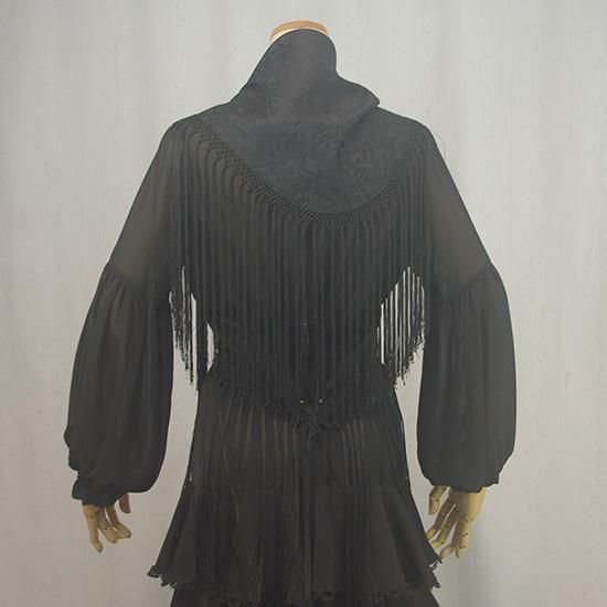 ストレッチマーメイドファルダ 5段シフォンフリル ベロア ブラック・マドローニョ