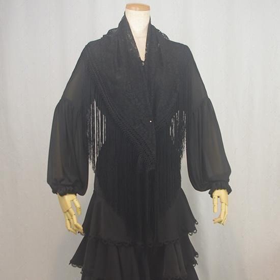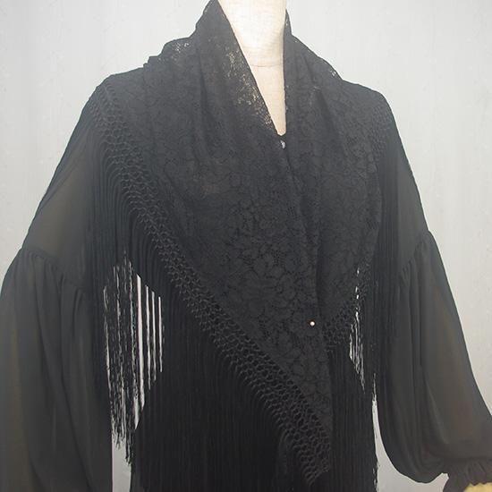 ストレッチマーメイドファルダ 5段シフォンフリル ベロア ブラック・マドローニョ