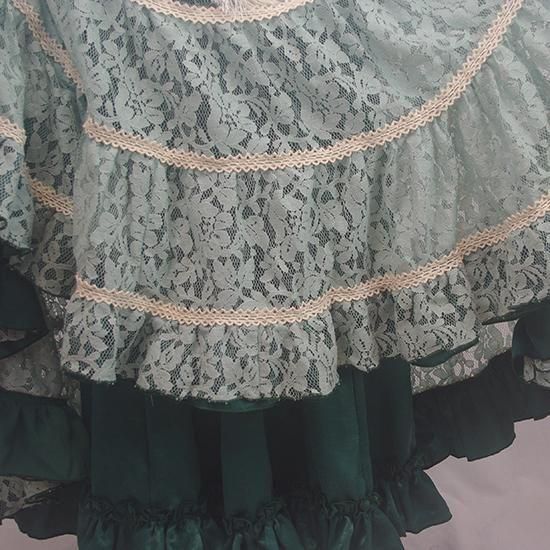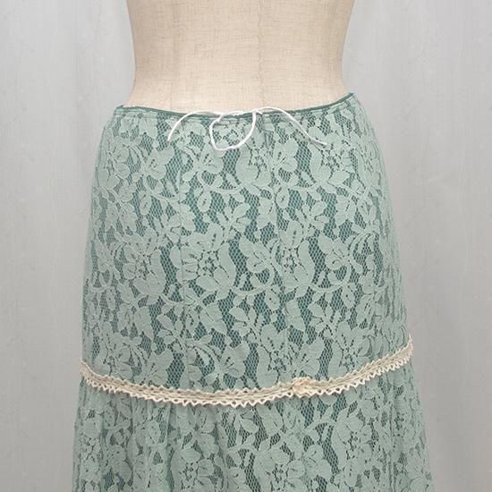 ティアードファルダ ペチコート付 レース生地 ミントグリーン