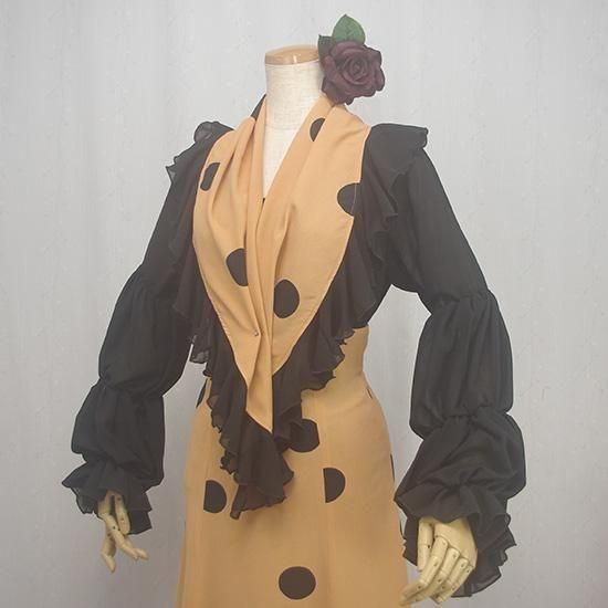 ピキージョ レース付 ベージュ×ブラック水玉 124×25/8cmフリル