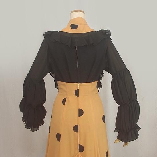 ストレッチマーメイドファルダ 5段シフォンフリル ベロア ブラック・マドローニョ