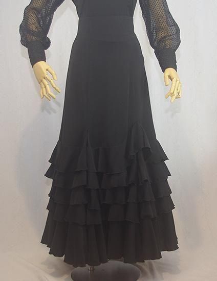 ストレッチマーメイドファルダ 5段シフォンフリル ベロア ブラック・マドローニョ