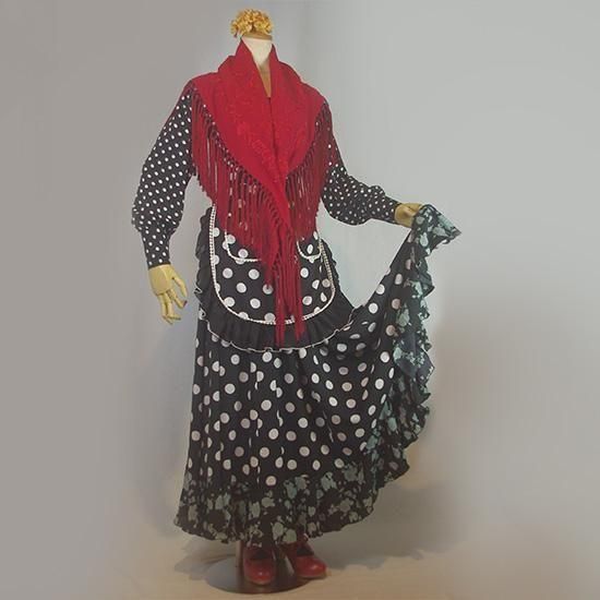 ペチコート付き、ピキージョ付きファルダカナステーラ(ティアードハイウエストスカート)ブラック×レッド カットシフォン