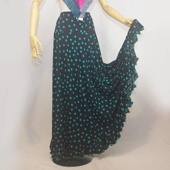 レッスンファルダ フレアータイプ1段フリル 水玉ブラック×グリーン