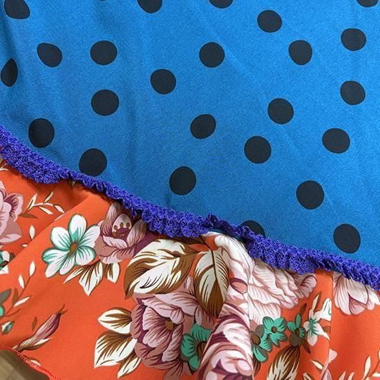 たっぷり広がる2段フリルファルダ 水玉 ネイビー×モカ