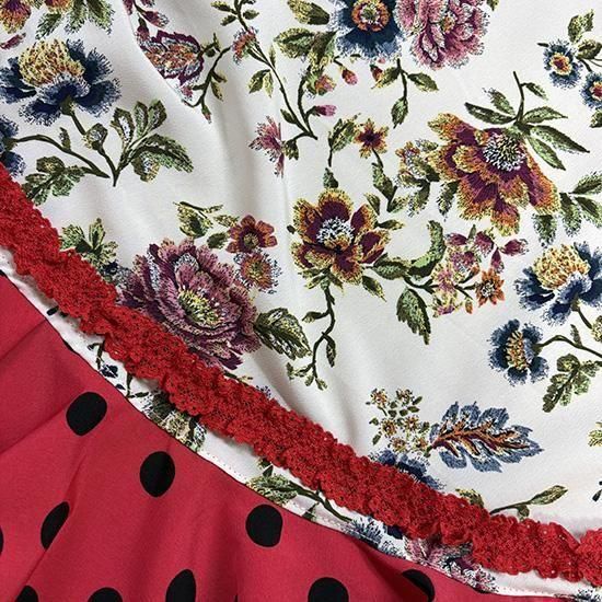 ペチコート付き、ピキージョ付きファルダカナステーラ(ティアードハイウエストスカート)ブラック×レッド カットシフォン